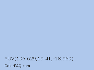 YUV 196.629,19.41,-18.969 Color is a very light blue color and the nearest color is Pale Cornflower Blue #abcdef. Hex code #afc8ec and RGB value is rgb(175,200,236). In RGB color space, this color is composed of 69% red, 78% green, 93% blue, In CMYK color space, this color is composed of 26% cyan, 15% magenta, 0% yellow , 7% black , In HSL color space, this color has a hue angle of 215° , 62% saturation and 81% lightness.