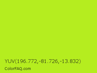 YUV 196.772,-81.726,-13.832 Color is a normal lime color and the nearest color is Inch Worm #b0e313. Hex code #b5ed1f and RGB value is rgb(181,237,31). In RGB color space, this color is composed of 71% red, 93% green, 12% blue, In CMYK color space, this color is composed of 24% cyan, 0% magenta, 87% yellow , 7% black , In HSL color space, this color has a hue angle of 76° , 85% saturation and 53% lightness.