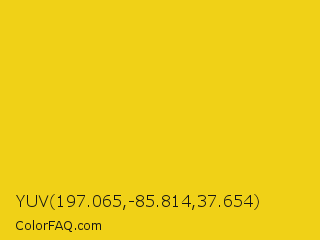 YUV 197.065,-85.814,37.654 Color is a normal yellow color and the nearest color is Jonquil #f4ca16. Hex code #f0d117 and RGB value is rgb(240,209,23). In RGB color space, this color is composed of 94% red, 82% green, 9% blue, In CMYK color space, this color is composed of 0% cyan, 13% magenta, 90% yellow , 6% black , In HSL color space, this color has a hue angle of 51° , 88% saturation and 52% lightness.