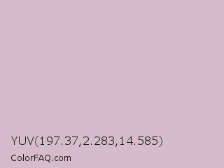 YUV 197.37,2.283,14.585 Color is a light rose color and the nearest color is Pink Flare #e1c0c8. Hex code #d6bcca and RGB value is rgb(214,188,202). In RGB color space, this color is composed of 84% red, 74% green, 79% blue, In CMYK color space, this color is composed of 0% cyan, 12% magenta, 6% yellow , 16% black , In HSL color space, this color has a hue angle of 328° , 24% saturation and 79% lightness.