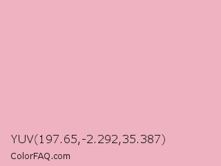 YUV 197.65,-2.292,35.387 Color is a very light red color and the nearest color is Nadeshiko Pink #f6adc6. Hex code #eeb2c1 and RGB value is rgb(238,178,193). In RGB color space, this color is composed of 93% red, 70% green, 76% blue, In CMYK color space, this color is composed of 0% cyan, 25% magenta, 19% yellow , 7% black , In HSL color space, this color has a hue angle of 345° , 64% saturation and 82% lightness.