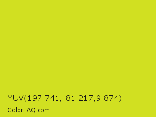 YUV 197.741,-81.217,9.874 Color is a normal yellow color and the nearest color is Pear #d1e231. Hex code #d1e021 and RGB value is rgb(209,224,33). In RGB color space, this color is composed of 82% red, 88% green, 13% blue, In CMYK color space, this color is composed of 7% cyan, 0% magenta, 85% yellow , 12% black , In HSL color space, this color has a hue angle of 65° , 75% saturation and 50% lightness.