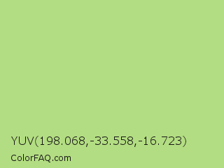 YUV 198.068,-33.558,-16.723 Color is a light green color and the nearest color is Yellow Green #c5e17a. Hex code #b3dd82 and RGB value is rgb(179,221,130). In RGB color space, this color is composed of 70% red, 87% green, 51% blue, In CMYK color space, this color is composed of 19% cyan, 0% magenta, 41% yellow , 13% black , In HSL color space, this color has a hue angle of 88° , 57% saturation and 69% lightness.