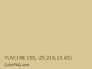 YUV 198.155,-25.219,15.65 Color is a light orange color and the nearest color is Pavlova #d7c498. Hex code #d8c793 and RGB value is rgb(216,199,147). In RGB color space, this color is composed of 85% red, 78% green, 58% blue, In CMYK color space, this color is composed of 0% cyan, 8% magenta, 32% yellow , 15% black , In HSL color space, this color has a hue angle of 45° , 47% saturation and 71% lightness.