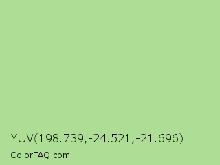 YUV 198.739,-24.521,-21.696 Color is a light green color and the nearest color is Granny Smith Apple #a8e4a0. Hex code #aedd95 and RGB value is rgb(174,221,149). In RGB color space, this color is composed of 68% red, 87% green, 58% blue, In CMYK color space, this color is composed of 21% cyan, 0% magenta, 33% yellow , 13% black , In HSL color space, this color has a hue angle of 99° , 51% saturation and 73% lightness.