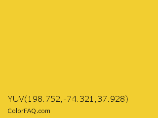 YUV 198.752,-74.321,37.928 Color is a normal yellow color and the nearest color is Golden Dream #f0d52d. Hex code #f2ce30 and RGB value is rgb(242,206,48). In RGB color space, this color is composed of 95% red, 81% green, 19% blue, In CMYK color space, this color is composed of 0% cyan, 15% magenta, 80% yellow , 5% black , In HSL color space, this color has a hue angle of 49° , 88% saturation and 57% lightness.