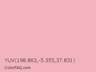YUV 198.863,-5.355,37.831 Color is a very light red color and the nearest color is Nadeshiko Pink #f6adc6. Hex code #f2b3bc and RGB value is rgb(242,179,188). In RGB color space, this color is composed of 95% red, 70% green, 74% blue, In CMYK color space, this color is composed of 0% cyan, 26% magenta, 22% yellow , 5% black , In HSL color space, this color has a hue angle of 351° , 71% saturation and 83% lightness.