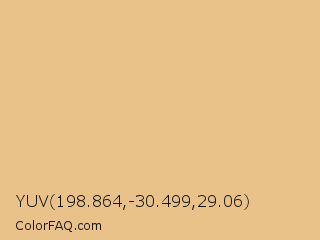 YUV 198.864,-30.499,29.06 Color is a light orange color and the nearest color is Gold Sand #e6be8a. Hex code #e8c289 and RGB value is rgb(232,194,137). In RGB color space, this color is composed of 91% red, 76% green, 54% blue, In CMYK color space, this color is composed of 0% cyan, 16% magenta, 41% yellow , 9% black , In HSL color space, this color has a hue angle of 36° , 67% saturation and 72% lightness.