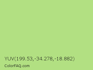 YUV 199.53,-34.278,-18.882 Color is a light green color and the nearest color is Yellow Green #c5e17a. Hex code #b2e082 and RGB value is rgb(178,224,130). In RGB color space, this color is composed of 70% red, 88% green, 51% blue, In CMYK color space, this color is composed of 21% cyan, 0% magenta, 42% yellow , 12% black , In HSL color space, this color has a hue angle of 89° , 60% saturation and 69% lightness.