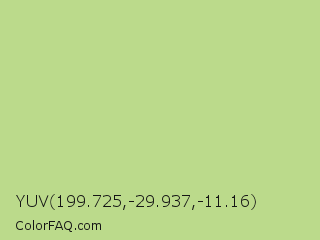 YUV 199.725,-29.937,-11.16 Color is a light green color and the nearest color is Medium Spring Bud #c9dc87. Hex code #bbda8b and RGB value is rgb(187,218,139). In RGB color space, this color is composed of 73% red, 85% green, 55% blue, In CMYK color space, this color is composed of 14% cyan, 0% magenta, 36% yellow , 15% black , In HSL color space, this color has a hue angle of 84° , 52% saturation and 70% lightness.