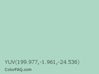 YUV 199.977,-1.961,-24.536 Color is a light green color and the nearest color is Gum Leaf #b6d3bf. Hex code #acd7c4 and RGB value is rgb(172,215,196). In RGB color space, this color is composed of 67% red, 84% green, 77% blue, In CMYK color space, this color is composed of 20% cyan, 0% magenta, 9% yellow , 16% black , In HSL color space, this color has a hue angle of 153° , 35% saturation and 76% lightness.