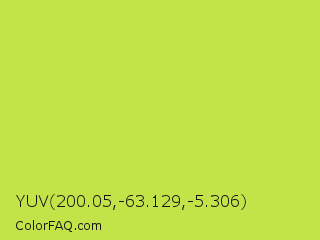 YUV 200.05,-63.129,-5.306 Color is a normal lime color and the nearest color is June Bud #bdda57. Hex code #c2e448 and RGB value is rgb(194,228,72). In RGB color space, this color is composed of 76% red, 89% green, 28% blue, In CMYK color space, this color is composed of 15% cyan, 0% magenta, 68% yellow , 11% black , In HSL color space, this color has a hue angle of 73° , 74% saturation and 59% lightness.