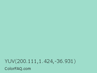 YUV 200.111,1.424,-36.931 Color is a light green color and the nearest color is Sinbad #9fd7d3. Hex code #9eddcb and RGB value is rgb(158,221,203). In RGB color space, this color is composed of 62% red, 87% green, 80% blue, In CMYK color space, this color is composed of 29% cyan, 0% magenta, 8% yellow , 13% black , In HSL color space, this color has a hue angle of 163° , 48% saturation and 74% lightness.