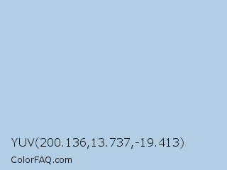 YUV 200.136,13.737,-19.413 Color is a light blue color and the nearest color is Spindle #b6d1ea. Hex code #b2cee4 and RGB value is rgb(178,206,228). In RGB color space, this color is composed of 70% red, 81% green, 89% blue, In CMYK color space, this color is composed of 22% cyan, 10% magenta, 0% yellow , 11% black , In HSL color space, this color has a hue angle of 206° , 48% saturation and 80% lightness.