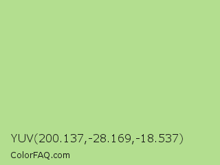 YUV 200.137,-28.169,-18.537 Color is a light green color and the nearest color is Feijoa #9fdd8c. Hex code #b3de8f and RGB value is rgb(179,222,143). In RGB color space, this color is composed of 70% red, 87% green, 56% blue, In CMYK color space, this color is composed of 19% cyan, 0% magenta, 36% yellow , 13% black , In HSL color space, this color has a hue angle of 93° , 54% saturation and 72% lightness.