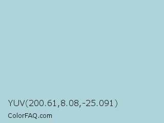 YUV 200.61,8.08,-25.091 Color is a light cyan color and the nearest color is Jungle Mist #b4cfd3. Hex code #acd4d9 and RGB value is rgb(172,212,217). In RGB color space, this color is composed of 67% red, 83% green, 85% blue, In CMYK color space, this color is composed of 21% cyan, 2% magenta, 0% yellow , 15% black , In HSL color space, this color has a hue angle of 187° , 37% saturation and 76% lightness.
