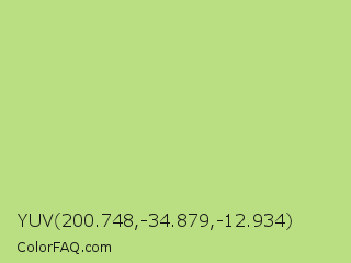 YUV 200.748,-34.879,-12.934 Color is a light green color and the nearest color is Yellow Green #c5e17a. Hex code #bade82 and RGB value is rgb(186,222,130). In RGB color space, this color is composed of 73% red, 87% green, 51% blue, In CMYK color space, this color is composed of 16% cyan, 0% magenta, 41% yellow , 13% black , In HSL color space, this color has a hue angle of 83° , 58% saturation and 69% lightness.