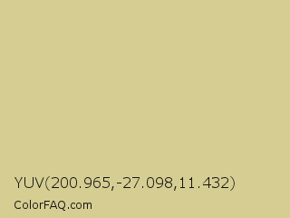 YUV 200.965,-27.098,11.432 Color is a light yellow color and the nearest color is Winter Hazel #d5d195. Hex code #d6cd92 and RGB value is rgb(214,205,146). In RGB color space, this color is composed of 84% red, 80% green, 57% blue, In CMYK color space, this color is composed of 0% cyan, 4% magenta, 32% yellow , 16% black , In HSL color space, this color has a hue angle of 52° , 45% saturation and 71% lightness.