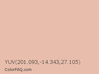 YUV 201.093,-14.343,27.105 Color is a light orange color and the nearest color is Zinnwaldite #ebc2af. Hex code #e8bfac and RGB value is rgb(232,191,172). In RGB color space, this color is composed of 91% red, 75% green, 67% blue, In CMYK color space, this color is composed of 0% cyan, 18% magenta, 26% yellow , 9% black , In HSL color space, this color has a hue angle of 19° , 57% saturation and 79% lightness.