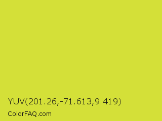 YUV 201.26,-71.613,9.419 Color is a normal yellow color and the nearest color is Pear #d1e231. Hex code #d4e038 and RGB value is rgb(212,224,56). In RGB color space, this color is composed of 83% red, 88% green, 22% blue, In CMYK color space, this color is composed of 5% cyan, 0% magenta, 75% yellow , 12% black , In HSL color space, this color has a hue angle of 64° , 73% saturation and 55% lightness.