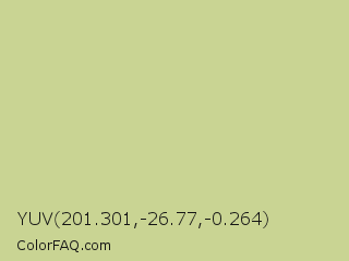 YUV 201.301,-26.77,-0.264 Color is a light yellow color and the nearest color is Pine Glade #c7cd90. Hex code #c9d493 and RGB value is rgb(201,212,147). In RGB color space, this color is composed of 79% red, 83% green, 58% blue, In CMYK color space, this color is composed of 5% cyan, 0% magenta, 31% yellow , 17% black , In HSL color space, this color has a hue angle of 70° , 43% saturation and 70% lightness.