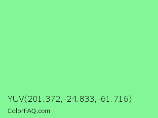 YUV 201.372,-24.833,-61.716 Color is a light green color and the nearest color is Light Green #90ee90. Hex code #83f797 and RGB value is rgb(131,247,151). In RGB color space, this color is composed of 51% red, 97% green, 59% blue, In CMYK color space, this color is composed of 47% cyan, 0% magenta, 39% yellow , 3% black , In HSL color space, this color has a hue angle of 130° , 88% saturation and 74% lightness.