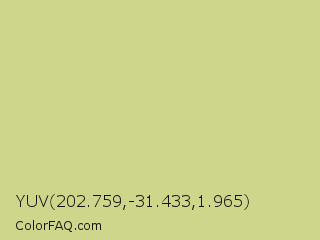 YUV 202.759,-31.433,1.965 Color is a light yellow color and the nearest color is Medium Spring Bud #c9dc87. Hex code #cdd68b and RGB value is rgb(205,214,139). In RGB color space, this color is composed of 80% red, 84% green, 55% blue, In CMYK color space, this color is composed of 4% cyan, 0% magenta, 35% yellow , 16% black , In HSL color space, this color has a hue angle of 67° , 48% saturation and 69% lightness.