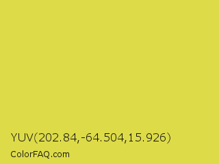 YUV 202.84,-64.504,15.926 Color is a normal yellow color and the nearest color is Wattle #dcd747. Hex code #dddb48 and RGB value is rgb(221,219,72). In RGB color space, this color is composed of 87% red, 86% green, 28% blue, In CMYK color space, this color is composed of 0% cyan, 1% magenta, 67% yellow , 13% black , In HSL color space, this color has a hue angle of 59° , 69% saturation and 57% lightness.