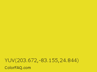 YUV 203.672,-83.155,24.844 Color is a normal yellow color and the nearest color is Sunflower #e4d422. Hex code #e8de23 and RGB value is rgb(232,222,35). In RGB color space, this color is composed of 91% red, 87% green, 14% blue, In CMYK color space, this color is composed of 0% cyan, 4% magenta, 85% yellow , 9% black , In HSL color space, this color has a hue angle of 57° , 81% saturation and 52% lightness.