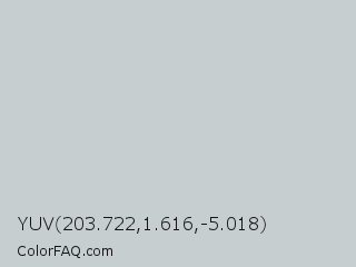 YUV 203.722,1.616,-5.018 Color is a light cyan color and the nearest color is Tiara #c3d1d1. Hex code #c6cecf and RGB value is rgb(198,206,207). In RGB color space, this color is composed of 78% red, 81% green, 81% blue, In CMYK color space, this color is composed of 4% cyan, 0% magenta, 0% yellow , 19% black , In HSL color space, this color has a hue angle of 187° , 9% saturation and 79% lightness.