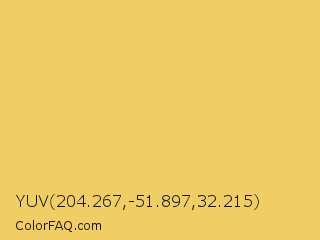 YUV 204.267,-51.897,32.215 Color is a light orange color and the nearest color is Cream Can #f5c85c. Hex code #f1ce63 and RGB value is rgb(241,206,99). In RGB color space, this color is composed of 95% red, 81% green, 39% blue, In CMYK color space, this color is composed of 0% cyan, 15% magenta, 59% yellow , 5% black , In HSL color space, this color has a hue angle of 45° , 84% saturation and 67% lightness.