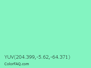 YUV 204.399,-5.62,-64.371 Color is a light green color and the nearest color is Aquamarine #7fffd4. Hex code #83f4c1 and RGB value is rgb(131,244,193). In RGB color space, this color is composed of 51% red, 96% green, 76% blue, In CMYK color space, this color is composed of 46% cyan, 0% magenta, 21% yellow , 4% black , In HSL color space, this color has a hue angle of 153° , 84% saturation and 74% lightness.