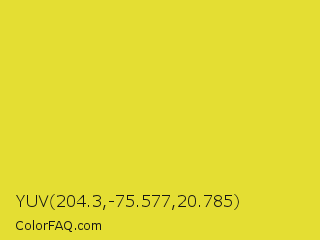 YUV 204.3,-75.577,20.785 Color is a normal yellow color and the nearest color is Dandelion #f0e130. Hex code #e4de33 and RGB value is rgb(228,222,51). In RGB color space, this color is composed of 89% red, 87% green, 20% blue, In CMYK color space, this color is composed of 0% cyan, 3% magenta, 78% yellow , 11% black , In HSL color space, this color has a hue angle of 58° , 77% saturation and 55% lightness.