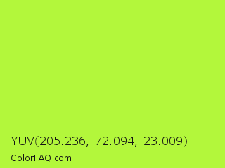 YUV 205.236,-72.094,-23.009 Color is a normal green color and the nearest color is Green Lizard #a7f432. Hex code #b3f73b and RGB value is rgb(179,247,59). In RGB color space, this color is composed of 70% red, 97% green, 23% blue, In CMYK color space, this color is composed of 28% cyan, 0% magenta, 76% yellow , 3% black , In HSL color space, this color has a hue angle of 82° , 92% saturation and 60% lightness.