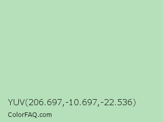 YUV 206.697,-10.697,-22.536 Color is a light green color and the nearest color is Fringy Flower #b1e2c1. Hex code #b5e0b9 and RGB value is rgb(181,224,185). In RGB color space, this color is composed of 71% red, 88% green, 73% blue, In CMYK color space, this color is composed of 19% cyan, 0% magenta, 17% yellow , 12% black , In HSL color space, this color has a hue angle of 126° , 41% saturation and 79% lightness.