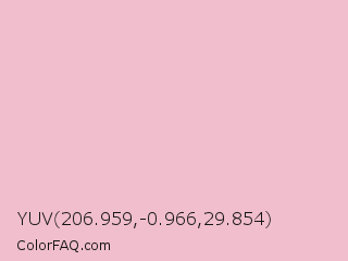 YUV 206.959,-0.966,29.854 Color is a very light rose color and the nearest color is Orchid Pink #f2bdcd. Hex code #f1becd and RGB value is rgb(241,190,205). In RGB color space, this color is composed of 95% red, 75% green, 80% blue, In CMYK color space, this color is composed of 0% cyan, 21% magenta, 15% yellow , 5% black , In HSL color space, this color has a hue angle of 342° , 65% saturation and 85% lightness.