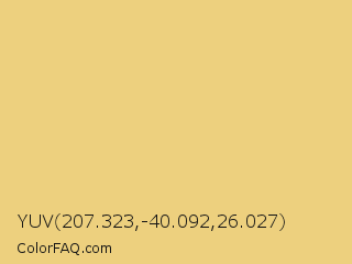 YUV 207.323,-40.092,26.027 Color is a light orange color and the nearest color is Golden Sand #f0db7d. Hex code #edd07e and RGB value is rgb(237,208,126). In RGB color space, this color is composed of 93% red, 82% green, 49% blue, In CMYK color space, this color is composed of 0% cyan, 12% magenta, 47% yellow , 7% black , In HSL color space, this color has a hue angle of 44° , 76% saturation and 71% lightness.