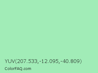 YUV 207.533,-12.095,-40.809 Color is a light green color and the nearest color is Teal Deer #99e6b3. Hex code #a1ecb7 and RGB value is rgb(161,236,183). In RGB color space, this color is composed of 63% red, 93% green, 72% blue, In CMYK color space, this color is composed of 32% cyan, 0% magenta, 22% yellow , 7% black , In HSL color space, this color has a hue angle of 138° , 66% saturation and 78% lightness.