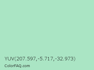 YUV 207.597,-5.717,-32.973 Color is a light green color and the nearest color is Padua #ade6c4. Hex code #aae5c4 and RGB value is rgb(170,229,196). In RGB color space, this color is composed of 67% red, 90% green, 77% blue, In CMYK color space, this color is composed of 26% cyan, 0% magenta, 14% yellow , 10% black , In HSL color space, this color has a hue angle of 146° , 53% saturation and 78% lightness.