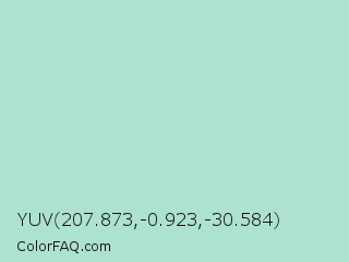 YUV 207.873,-0.923,-30.584 Color is a light green color and the nearest color is Padua #ade6c4. Hex code #ade2ce and RGB value is rgb(173,226,206). In RGB color space, this color is composed of 68% red, 89% green, 81% blue, In CMYK color space, this color is composed of 23% cyan, 0% magenta, 9% yellow , 11% black , In HSL color space, this color has a hue angle of 157° , 48% saturation and 78% lightness.