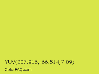YUV 207.916,-66.514,7.09 Color is a normal yellow color and the nearest color is Maximum Green Yellow #d9e650. Hex code #d8e649 and RGB value is rgb(216,230,73). In RGB color space, this color is composed of 85% red, 90% green, 29% blue, In CMYK color space, this color is composed of 6% cyan, 0% magenta, 68% yellow , 10% black , In HSL color space, this color has a hue angle of 65° , 76% saturation and 59% lightness.