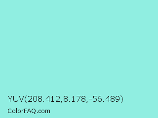 YUV 208.412,8.178,-56.489 Color is a light cyan color and the nearest color is Riptide #8be6d8. Hex code #90eee1 and RGB value is rgb(144,238,225). In RGB color space, this color is composed of 56% red, 93% green, 88% blue, In CMYK color space, this color is composed of 39% cyan, 0% magenta, 5% yellow , 7% black , In HSL color space, this color has a hue angle of 172° , 73% saturation and 75% lightness.