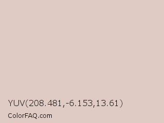 YUV 208.481,-6.153,13.61 Color is a very light color and the nearest color is Wafer #decbc6. Hex code #e0cbc4 and RGB value is rgb(224,203,196). In RGB color space, this color is composed of 88% red, 80% green, 77% blue, In CMYK color space, this color is composed of 0% cyan, 9% magenta, 13% yellow , 12% black , In HSL color space, this color has a hue angle of 15° , 31% saturation and 82% lightness.