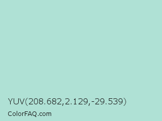 YUV 208.682,2.129,-29.539 Color is a light cyan color and the nearest color is Aqua Island #a1dad7. Hex code #afe1d5 and RGB value is rgb(175,225,213). In RGB color space, this color is composed of 69% red, 88% green, 84% blue, In CMYK color space, this color is composed of 22% cyan, 0% magenta, 5% yellow , 12% black , In HSL color space, this color has a hue angle of 166° , 45% saturation and 78% lightness.
