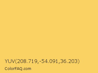 YUV 208.719,-54.091,36.203 Color is a light orange color and the nearest color is Goldenrod #fcd667. Hex code #fad163 and RGB value is rgb(250,209,99). In RGB color space, this color is composed of 98% red, 82% green, 39% blue, In CMYK color space, this color is composed of 0% cyan, 16% magenta, 60% yellow , 2% black , In HSL color space, this color has a hue angle of 44° , 94% saturation and 68% lightness.