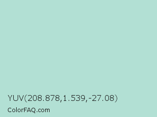 YUV 208.878,1.539,-27.08 Color is a light cyan color and the nearest color is Jet Stream #b5d2ce. Hex code #b2e0d4 and RGB value is rgb(178,224,212). In RGB color space, this color is composed of 70% red, 88% green, 83% blue, In CMYK color space, this color is composed of 21% cyan, 0% magenta, 5% yellow , 12% black , In HSL color space, this color has a hue angle of 164° , 43% saturation and 79% lightness.