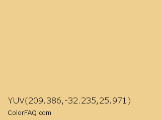 YUV 209.386,-32.235,25.971 Color is a light orange color and the nearest color is Chalky #eed794. Hex code #efcf90 and RGB value is rgb(239,207,144). In RGB color space, this color is composed of 94% red, 81% green, 56% blue, In CMYK color space, this color is composed of 0% cyan, 13% magenta, 40% yellow , 6% black , In HSL color space, this color has a hue angle of 40° , 75% saturation and 75% lightness.