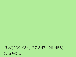 YUV 209.484,-27.847,-28.488 Color is a light green color and the nearest color is Granny Smith Apple #a8e4a0. Hex code #b1ed99 and RGB value is rgb(177,237,153). In RGB color space, this color is composed of 69% red, 93% green, 60% blue, In CMYK color space, this color is composed of 25% cyan, 0% magenta, 35% yellow , 7% black , In HSL color space, this color has a hue angle of 103° , 70% saturation and 76% lightness.