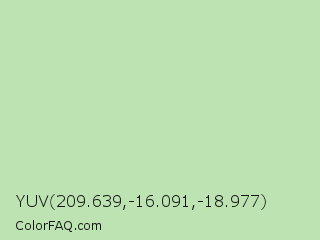 YUV 209.639,-16.091,-18.977 Color is a light green color and the nearest color is Pixie Green #c0d8b6. Hex code #bce3b1 and RGB value is rgb(188,227,177). In RGB color space, this color is composed of 74% red, 89% green, 69% blue, In CMYK color space, this color is composed of 17% cyan, 0% magenta, 22% yellow , 11% black , In HSL color space, this color has a hue angle of 107° , 47% saturation and 79% lightness.