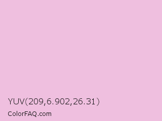 YUV 209,6.902,26.31 Color is a very light magenta color and the nearest color is Chantilly #f8c3df. Hex code #efbfdf and RGB value is rgb(239,191,223). In RGB color space, this color is composed of 94% red, 75% green, 87% blue, In CMYK color space, this color is composed of 0% cyan, 20% magenta, 7% yellow , 6% black , In HSL color space, this color has a hue angle of 320° , 60% saturation and 84% lightness.
